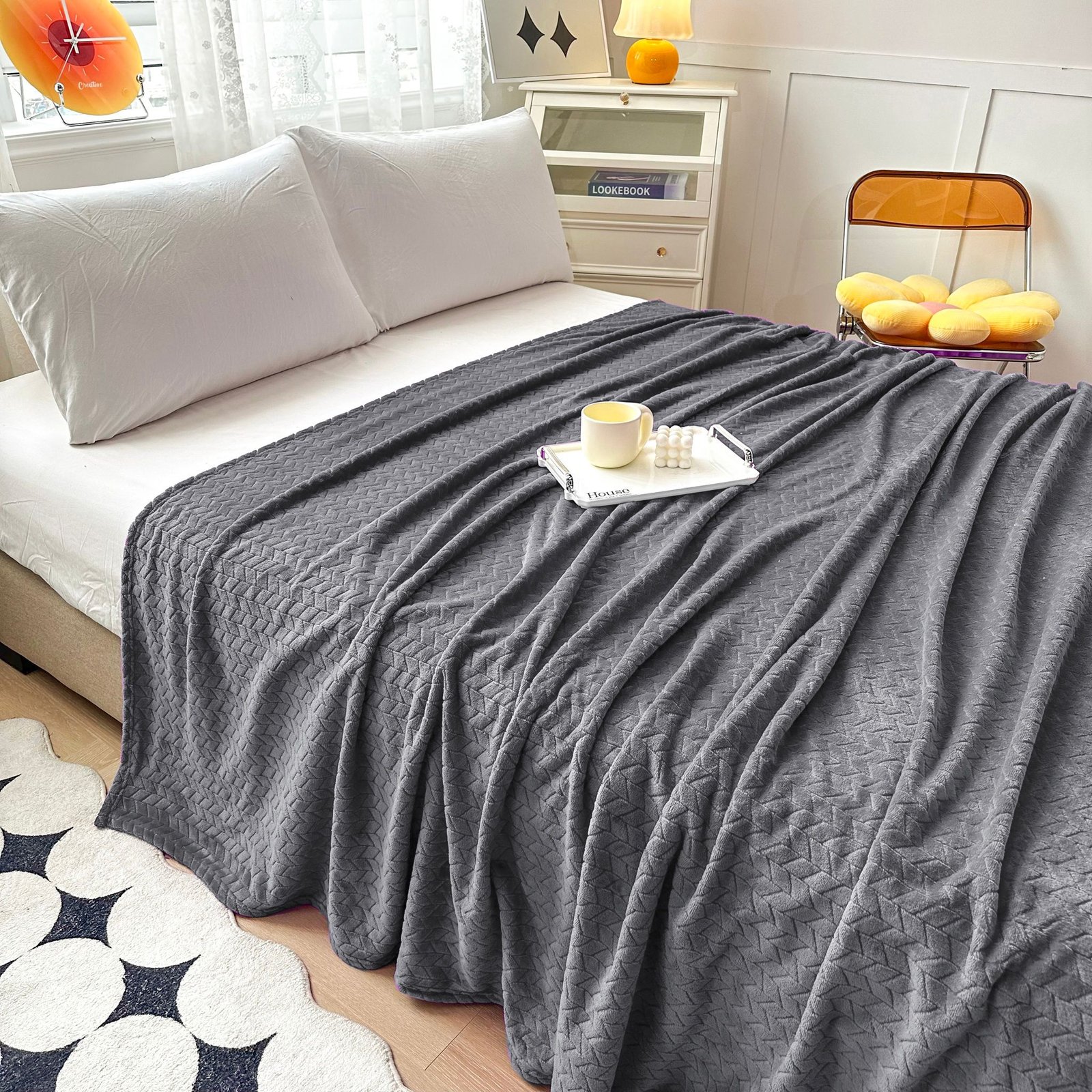 Materialul este moale și plăcut la atingere, fiind potrivit pentru momentele de relaxare acasă. Dimensiunea generoasă permite utilizarea atât pe pat, cât și pe canapea.